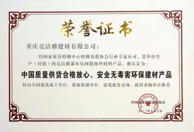 重慶亮潔雅建材有限公司是一家集科研,開(kāi)發(fā),生產(chǎn),銷(xiāo)售,工程設(shè)計(jì)與施工為一體的大型專(zhuān)業(yè)化涂料公司,具有國(guó)家專(zhuān)業(yè)建材承包施工資質(zhì),擁有一批高素質(zhì)的工程技術(shù)人員和經(jīng)驗(yàn)豐富的施工隊(duì)伍,全方位為您提供產(chǎn)品及工程服務(wù)。 本公司主營(yíng)環(huán)氧地坪涂料,環(huán)氧自流坪(無(wú)溶劑)地坪涂料,丙稀酸 地坪涂料,環(huán)氧防靜電地坪涂料,環(huán)氧固化劑,兼營(yíng)外墻漆等產(chǎn)品,現(xiàn)已通過(guò)ISO9001:2000國(guó)際質(zhì)量認(rèn)證,并廣泛運(yùn)用于:停車(chē)…